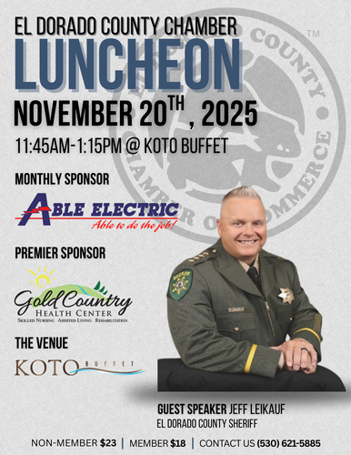 Please join us and our Guest Speaker: El Dorado County Sheriff Jeff Leikauf